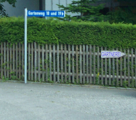 Von der Mühlenstrasse zweigt eine kleine einspurrige Teerstrasse ab hinunter in die Gärtnerei.